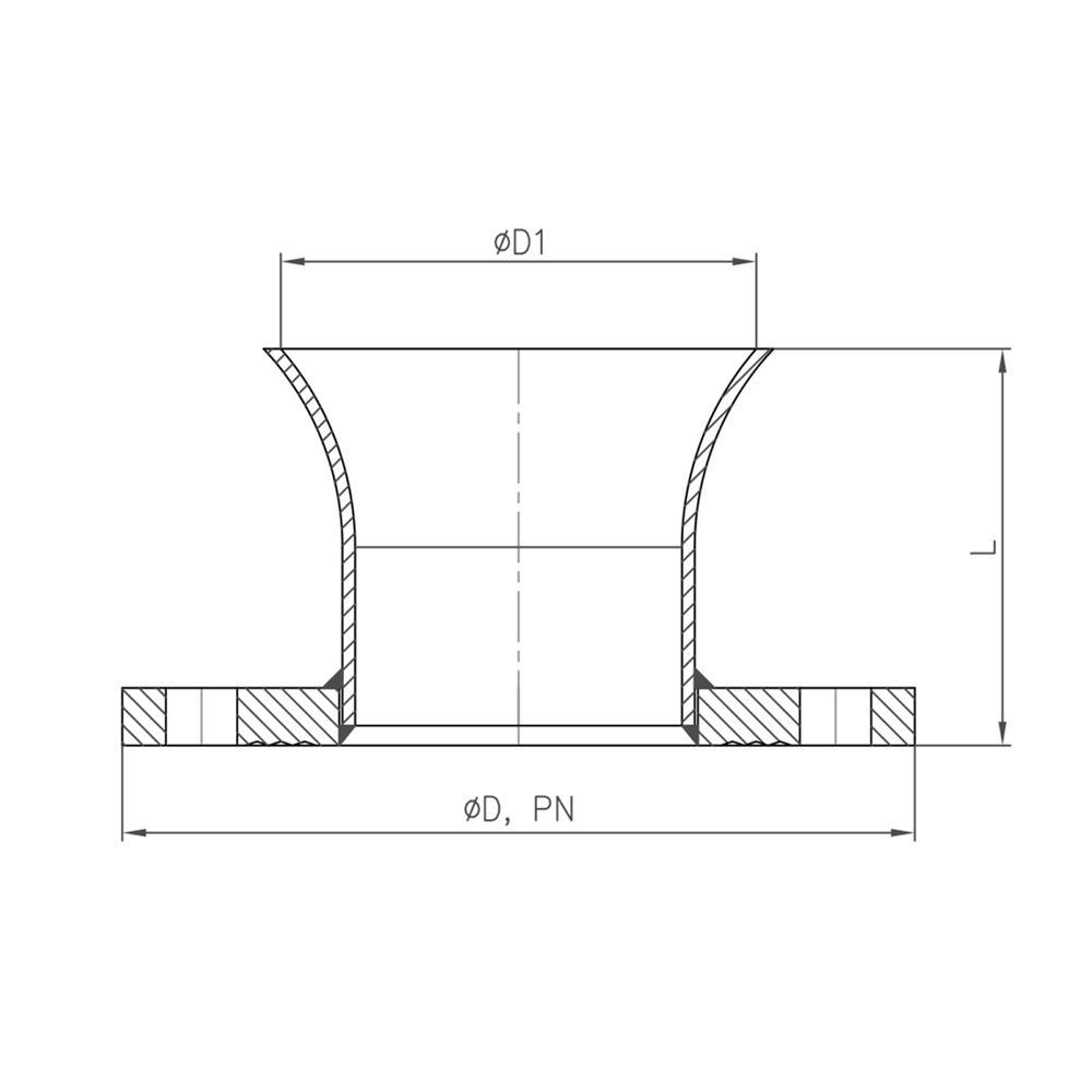 Priključna prirubnica je po tipu ravna prirubnica izrađena od ploča, sa priključnim merama u skladu sa standardom EN 1092-2 za prirubnice od livenog gvožđa, prema preporukama standarda EN 545. Za telo se koriste standardne cevi za zavarivanje sa spoljnjim prečnikom i debljinom zida koji su odabrani prema standardu EN 1092-1 (čelične prirubnice), za odgovarajući DN i PN. Sva zavarivanja se izvode prema priznatim tehnologijama, uz primenu odgovarajućeg dodatnog materijala. Na kraju procesa, sve površine standardno se zaštićuju plastificiranjem elektrostatičkim postupkom.