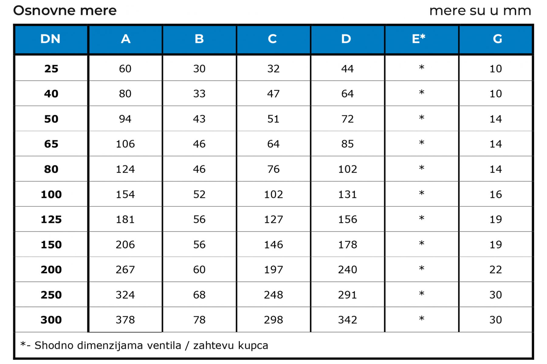 čvrstoća i elastičnost mogu biti po zahtevu kupca a dimenzije mogu odgovarati drugim nazivnim otvorioma i pritiscima kao i