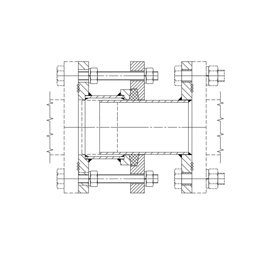 Montažno-demontažni komad je izrađen u zavarenoj konstrukciji, sastoji se od priključnih prirubnica, pritezne prirubnice zaptivača i tela od dve standardne cevi koje klize jedna u drugoj radi podešavanja dužine. Zaptivač kliznog dela je izrađen od kvalitetnog elastomera, sa specifičnim profilom koji omogućuje pouzdano zaptivanje kliznog spoja. Za vezu sa cevovodom nisu potrebni posebni vijci i navrtke - montažno-demontažni komad se isporučuje sa vijcima koji su dovoljno dugački i u maksimalno razvučenom položaju za spajanje sa prirubnicama cevovoda, u kombinaciji sa odgovarajućim navrtkama. Vijci i navrtke imaju mere i klasu čvrstoće koji su predviđeni standardima za prirubničke spojeve.