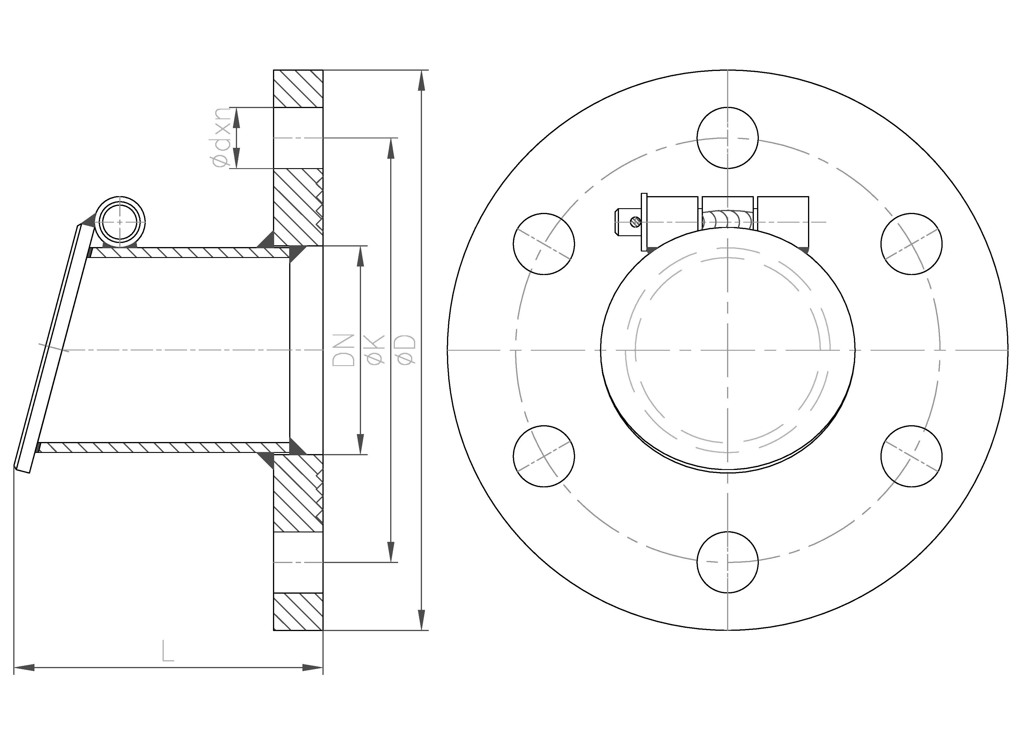 Ugradnja u horizontalnom položaju, osovina poklopca na gornjoj strani. Pritezanje vijcima na prirubnicu, mere prema tabeli.