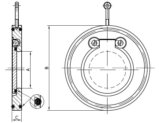 Vijak sa uškom na gornjem delu nepovratne klapne olakšava njenu montažu, a ujedno određuje pravilan položaj ugradnje (vertikalan položaj) pri horizontalnoj ugradnji. Spoljnji prečnik o-prstenova na telu je podešen za svaki standardni prečnik zaptivne površine tipa B za PN 10 i PN 16.