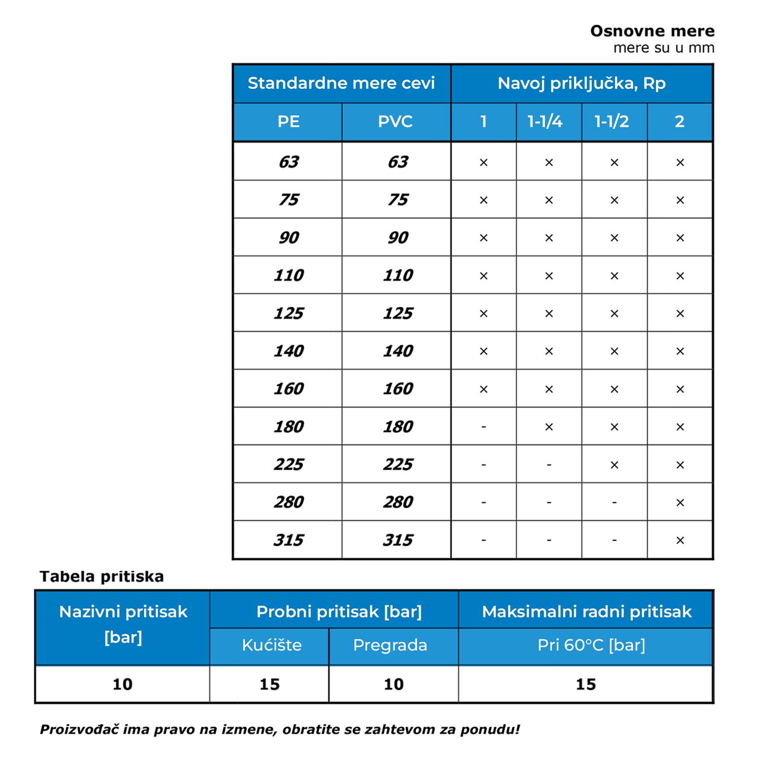 - Nazivni pritisak: PN 10/16,