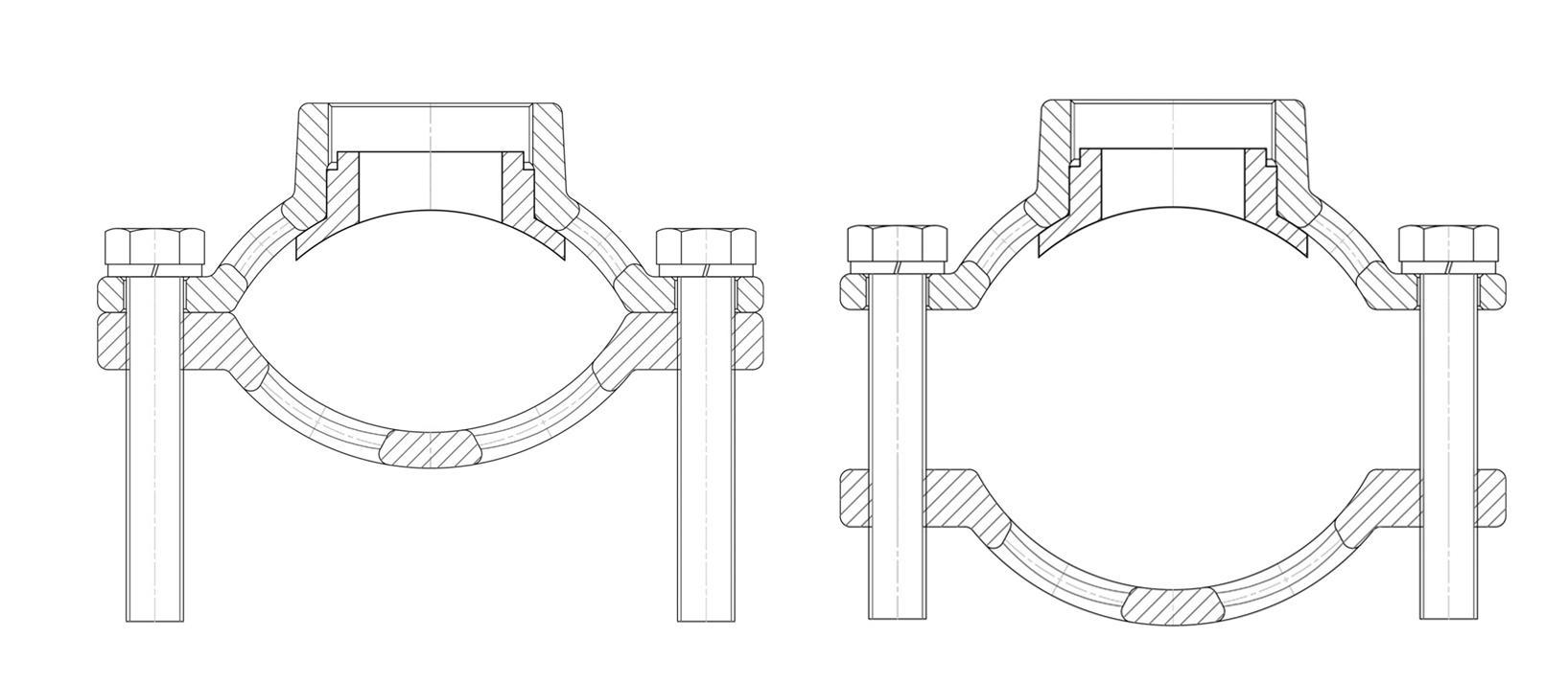 FEROPLAST UP ogrlice bez ventila se lako montira na cevovod uz pomoć samo 1 (jednog) ključa uzravnomerno pritezanje vijaka na obe strane bez opasnosti od blokiranja.